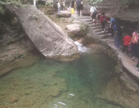 是潭瀑峡中一景,整个池也不是很大,但在谷深林密,阳光稀少的峡谷中,其水质清晰,凉意阵阵,在夏日里感觉到分外好