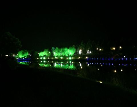 吃完晚饭去附近的项城附马沟公园散步,沿着河有非常漂亮的景观灯,照的树、水都非常美