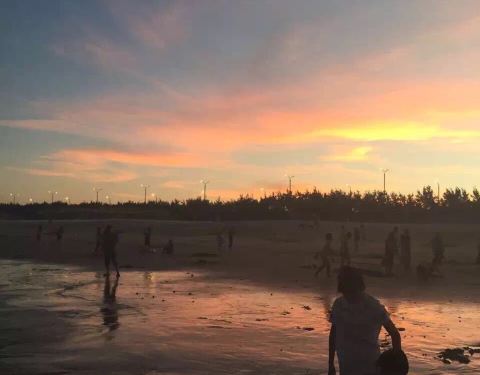 晚上过来玩的,在边上吃完大排档,下来这沙滩上走走,人还是挺多的,但是就算海水有点脏啊。这里买东西的还挺多,有孔明灯,烟花,,还有小孩子玩的玩具,游泳圈之类的。沙滩车一次五十元可以开两圈,还行。不过都是载小孩子玩。