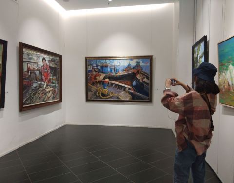 ...面朝大海,有很多名家作品依次在这里展出,当然齐鲁大地、胶东风格特色的作品居多,体现出地域特色嘛
