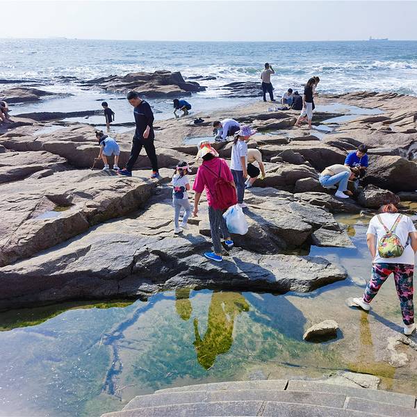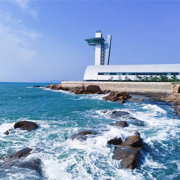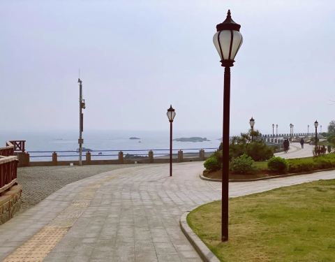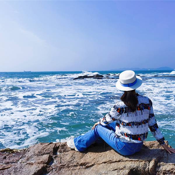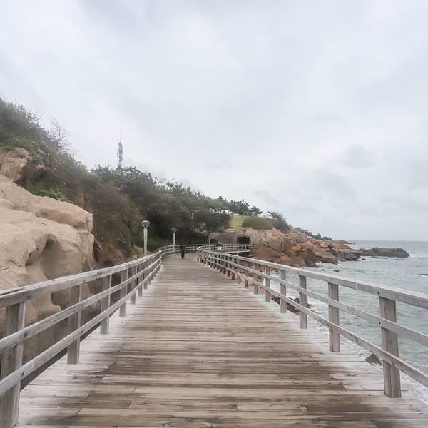 其实是一片海边的栈道和空地,因为木梯成为了网红景点。淡季去人很少,可以尽情拍照。这里的海水确实蓝,吹着海风可以一路散步到奥帆中心那块。