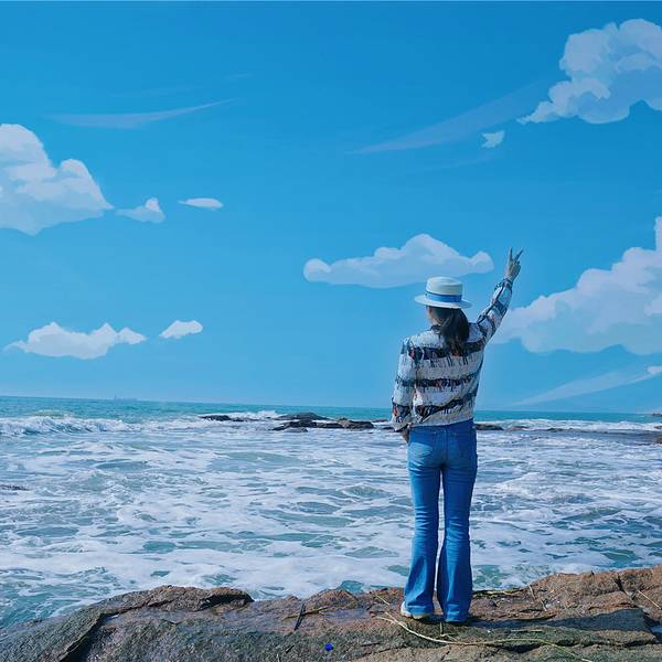燕儿岛山公园 因为海边晚上一圈儿灯光美得不像话而成为了近几年的网红打卡拍照圣地 白天的景色看起来就...还行吧 但来拍婚纱照和拗造型的人也还是不少 海边儿对我来说都一样 能看海能溜达罢了 今天的天气 小微风还没大太阳 向来不对紫外线做防晒处理的我 跟朋友在这待了俩小时 觉得很安逸