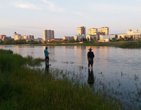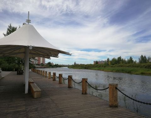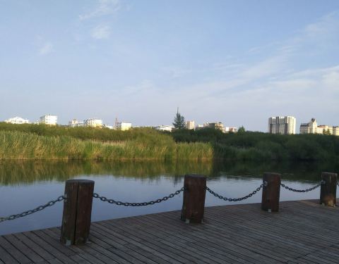 伊敏河,穿过海拉尔城,两岸建成了河边公园。晚上很多人在河边散步,还有许多人在河边垂钓。河边的风景还是不错的,木质走廊修的非常好。是休闲散步的好去处