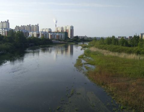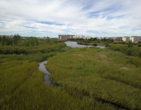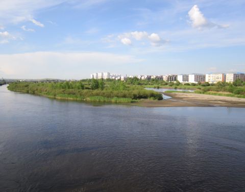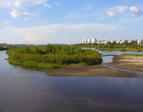 呼伦贝尔的中心海拉尔沿着伊敏河而建,伊敏河看起水不是很深,但水有些急。河水蛮清的。河中些小岛生长着满满的草,如同一片片的湿地。
