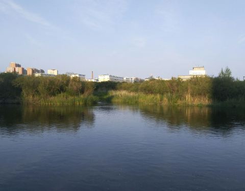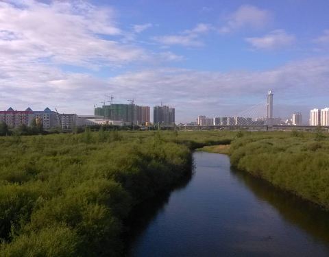 河的名字似乎是一个古老的部族,具体意思不了解,不在乎什么勇敢的意思。这条河把海拉尔市区分成两半,不过,不知道是否枯水期,我在河边看到的是远远小于堤岸的近乎断流,旁边的高高的枯黄的芦苇也能说明很多。