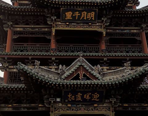 楼高约五层,四周都悬挂这各种牌匾,远观近看都很具有观赏性