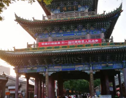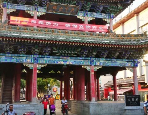 有好几座门牌楼,城楼,贯穿着一条步行街,步行街上没有很好玩的店,和其他城市的古城步行街比差了很多,有一些陕西特色小吃,比如拉皮,土豆擦擦