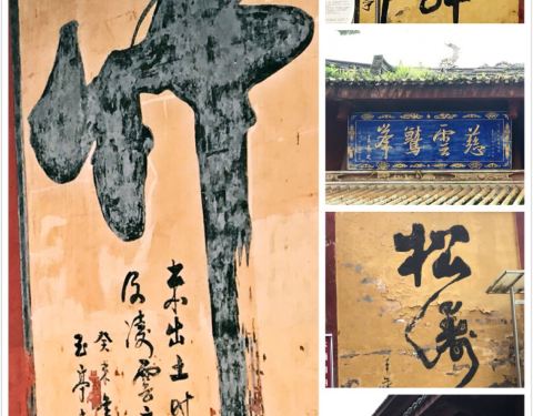 云峰古刹记 谦道故人 云龙风虎万物睹, 寻龙点穴幽堂处。 玉带环身逾千岁, 雨雾青纱弈太古。 楠木金丝叙旧事, 儒释道法共悟一, 丹青凤舞绣广大。 智灯佛骨普罗心。