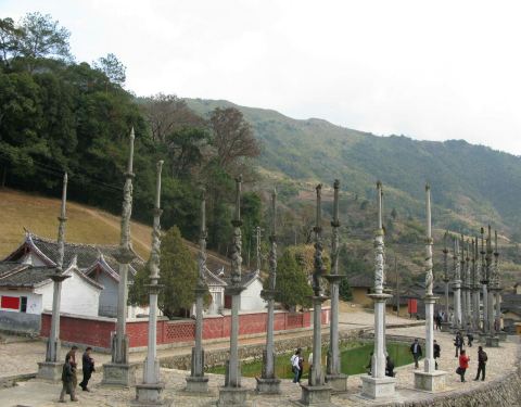 是宋代移民到闽南的张氏一脉的宗庙,由中原迁徙到此,依然保留读书取仕、沙场建功的传统,家庙门口立有数十根雕花石柱,每一根都代表有一位族人考取功名或沙场拜将。