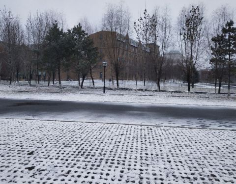 作为建筑学院,其中的很多建筑本身就是一个景色,白雪皑皑的时候,会透出另一种美