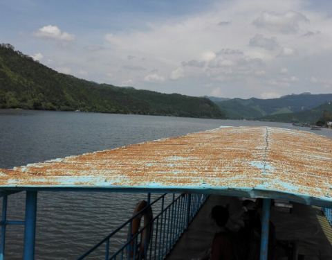 长湖是一个还没有开发的风景区,归属于英德市国家森林公园一部分。由于错过了午饭时间,导航恰巧停在翁江餐厅门前(小店面,不咋吸引眼球),下车打探游湖一事,餐厅老板夫妇人实在、健谈、热心介绍情况并帮忙联系船老大,一家三口(vip的享受,平民价包船)游湖一个小时,然后于餐厅内用晚膳,饭菜很合口,咸淡适宜,价格公道(夫妻店),完全私房菜的味道,点了一条边半斤河虾一个豆腐外加一个农家菜(老板娘知道我有点小感冒,特意改成盐水煮,很贴心),结帐才一百多。下回想涤尘、发呆还来这
