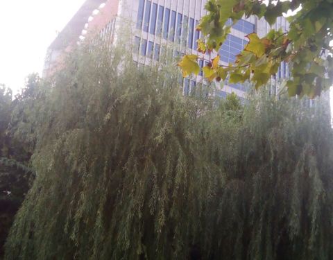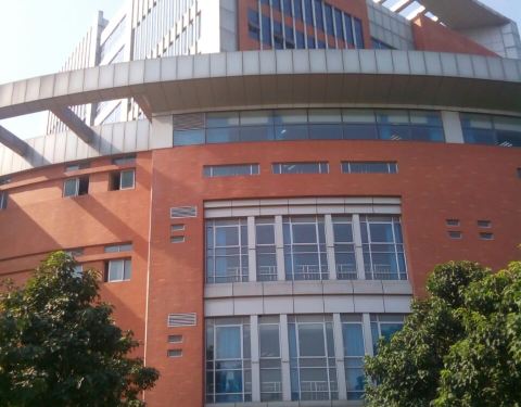 建筑挺气派的,植物也很多。校园内有个湖,不算很大,可以坐在湖边椅子上赏鸭子,挺好。