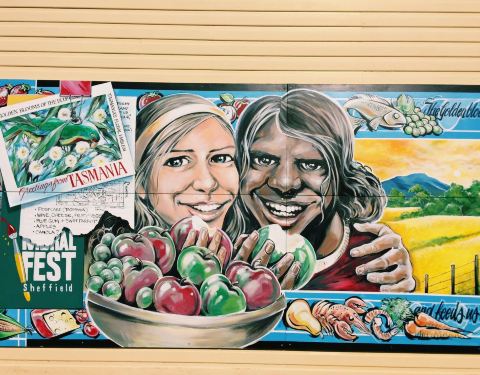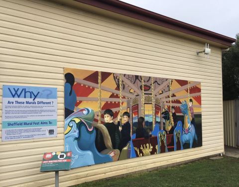 谢菲尔德壁画小镇位于塔斯马尼亚西北面的罗兰山(Mount Roland)脚下,离摇篮山63公里。从上世纪八十年代初开始,一群画家来到谢菲尔德镇落户,为重塑当地不景气的经济,改变小镇沉闷的人文环境,开始为小镇描绘上一幅又一幅的壁画。迄今已有百多幅壁画被留在了历史性建筑的外墙上,向过往客人娓娓道来小镇的历史和生活状况。这些壁画即便是即兴涂鸦,许多也是出自当代极具盛名的大师级艺术家之手。 现在小镇基本上所有建筑物的墙壁上都布满了壁画,就跟一个3D立体画本一样。中国歌手陈奕迅也在这座小镇上留下过他的作品。这里每年都要举办壁画展。