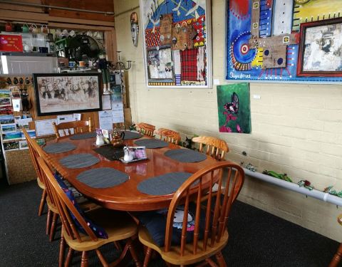 主街上有一家网红西餐厅,装修很有特色,里面各种各样的派很好吃挺有文艺范儿的小镇,街道两边的房子有点年份了,挺古朴的。游客中心旁边有个壁画中心,展示了数十幅壁画,其中有一副是周柏豪的作品。主街上有一家网红西餐厅,装修很有特色,里面各种各样的派很好吃。