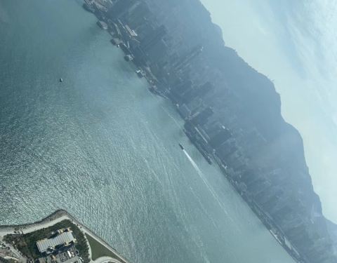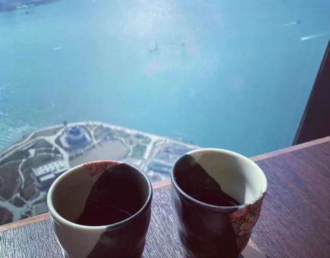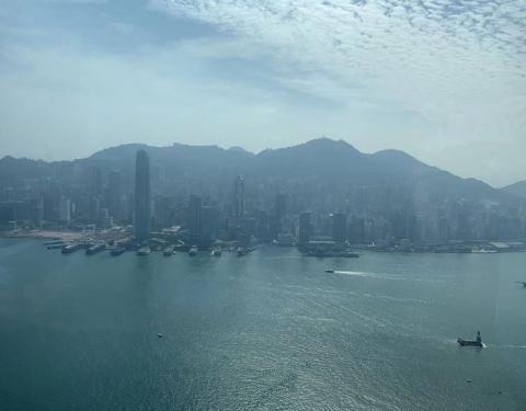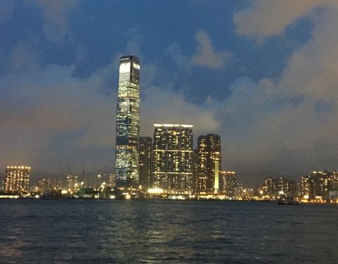 从ICC的101层望窗外,大海里没有硝烟,依旧是那个“船儿弯弯入海港,回头望沧海茫茫”的美丽香港 【性价比】灯光秀免费呀。