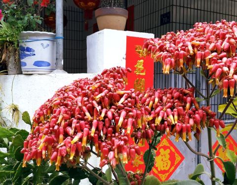 过年爬山登高是个好习惯,走出家门甩掉大吃大喝聚累的卡路里。经常爬东坪山,说是爬山其实就是徒步,完善的步道环绕着绿水青山,天气不是很好空气却是很好。“一山观两门,两岸情相连”观景台在天气晴朗的日子可以远眺到海峡对岸的金门岛。下山路上看到一户人家门口开得很热烈的花,春天到了。