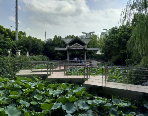 越过走廊就是一片竹林子,径直可以走向公园的北侧门口。浦东老镇高桥的一座免费公园浦东老镇高桥的一座免费公园。公园正门对面是一家准五星级的科雅酒店及红坊商街。步入公园内可以看见电子公告屏、小花坛以及一对石雕的小鹿!往里紧挨着儿童乐园:有碰碰车等上世纪九十年代的典型配备。穿过花丛是...浦东老镇高桥的一座免费公园。公园正门对面是一家准五星级的科雅酒店及红坊商街。步入公园内可以看见电子公告屏、小花坛以及一对石雕的小鹿!往里紧挨着儿童乐园:有碰碰车等上世纪九十年代的典型配备。穿过花丛是一片草坪,可以看见一片湖水,它有个雅名叫做银潋湖,湖畔有些小船及木条櫈子!园方在湖心提供游船游艺项目,但那些个船只说实话好土好幼稚。整片银潋湖占方2200平米,岸边有座石拱桥起名清溪桥长。穿过这座小桥可以看见一个老年阅览室,没有空调夏天只开电风扇,挺朴素的不能再朴素了。拐个弯再往里走是一条长廊,廊顶挂着好多文明标语。越过走廊就是一片竹林子,径直可以走向公园的北侧门口。那片草地边可以休息,往东还有二小亭子,都是老大爷打牌下棋的专场。 展开