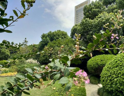 一座社区免费的绿地公园。门头很大但规模不大,里面假山绿植等就显得比较紧凑。午后走在期间有种绿植遮天蔽日的感觉,但同时也会有些闷。最不好的一点是飞虫好多。