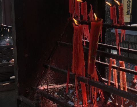 才知道城隍庙供奉的是对当地有贡献的人,也包括其他一些神仙。青浦这个城隍庙比想象的大的多,而且房屋也多,各路神仙显得有点挤。庙里的贡品很有意思,大部分只有一个盖了盖子的茶杯,里面应该有茶吧,条件好一点的么旁边有一个桂圆~~~