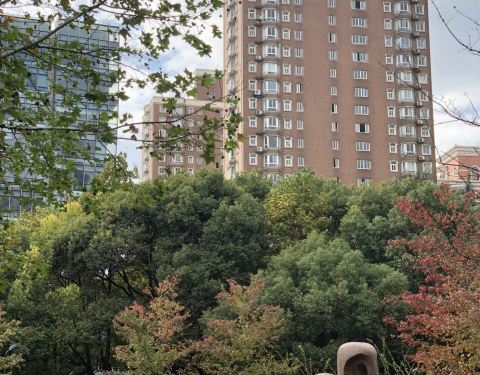这个绿地是自己原来生活的地方。当初的华山路幸福邨为了建这个绿地被拆掉了。 这个绿地建成后也快二十年了。绿树森森成荫,游人如织。其中的雕塑挺精致的。原来幸福邨口的公交站点也挪了,站牌上的“幸福邨”站名...