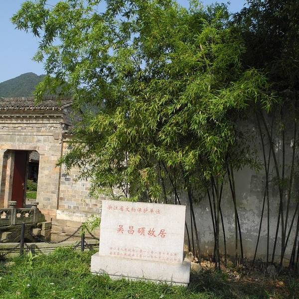吴昌硕故居位于浙江省湖州市安吉县鄣吴镇鄣吴村上街,是座四合院式的深宅大院,原有主楼、东、西侧厅、倒厅和"状元桥"、半月池等建筑。吴昌硕(1844.8.1-1927.11.29)22岁前一直生活在此。吴昌硕作为晚清民国时期著名国画家、书法家、篆刻家,"后海派"代表,杭州西泠印社首任社长,与任伯年、蒲华、虚谷合称为"清末海派四大家"。他热心提携后进,齐白石、王一亭、潘天寿、陈半丁、赵云壑、王个簃、沙孟海等均得其指授。