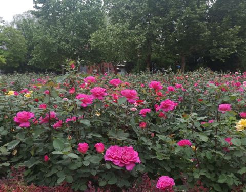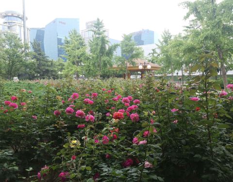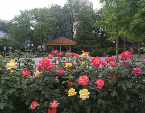 涌溪公园位于安贞桥西北角,南北长约150米,宽约70米。虽仅约一万平方米,但公园深受周边居民青睐。这儿原是一片小树林,公园保留了原有的部分树木,在中间建了大花坛。园内种满了玉兰、月季等花木,公园内还建有4个凉亭,装有休闲椅,设有公共卫生间,游园设施很全。紧邻交通繁忙的北三环,涌溪公园独享一隅难得的清静与雅致。目前月季花已经全部盛开,京城赏花好去处。