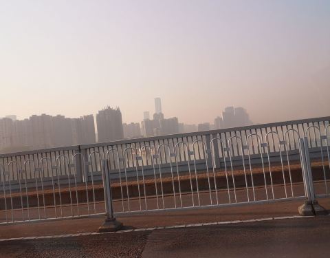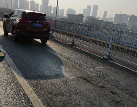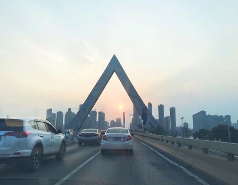 今天早上由酒店去机场就是路过的这一座大桥,底下就是湘江,早上桥上有点堵的哦,下面湘江水位比较低哦,早上景色还是挺美的哦。