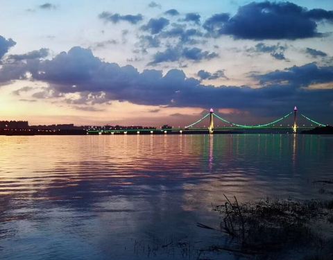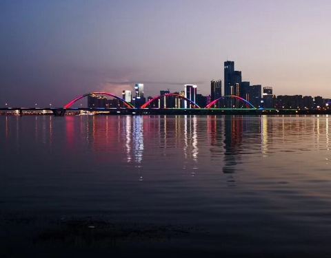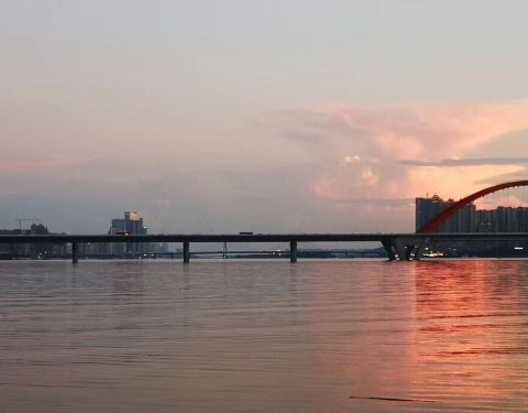 晚霞中湘江二桥很美很漂亮,景色优美,风景宜人,感觉不错,江边看湘江二桥跟美,交通要道,很方便,快捷,夜景也很好看,值得推荐给大家,棒棒的。