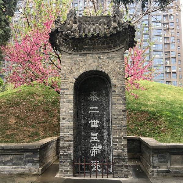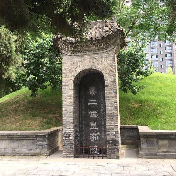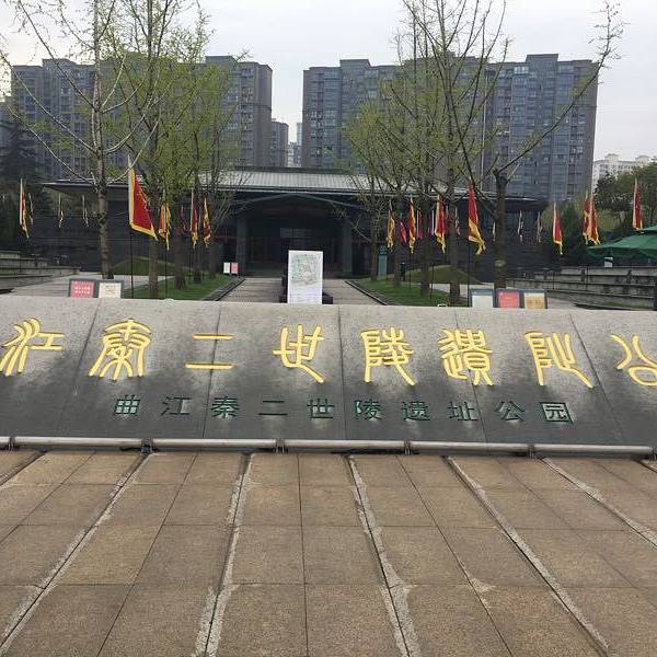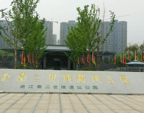 西安曲江秦二世陵遗址公园:位于西安市曲江池遗址公园南岸,占地面积约70亩,是一处集遗址保护、文化展陈、园林建设为一体的秦文化遗址公园。