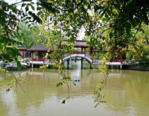 在金山,也能圆你一个古风梦!荣欣书院、车镜公园、荟萃园快来围观吧!上海金山吕巷车镜公园,欢迎您!车镜公园是上海市郊第一家乡镇自筹资金近千万元建造的公园,由干巷汽车镜(集团)有限公司投资建造,建于2002年,占地75亩。全园以苏州园林风格建造,以五亭湖为中,围绕凉亭,长廊,龙墙,藤桥等古风建筑。