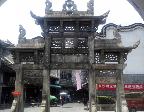 一座古老的牌坊,保存至今很有历史感,但位置周边环境很差,处于老长沙民居中,有点棚户区的味道,小区里人来人往生活气息浓厚,大多是本地居民住家,零星点缀着几个油炸摊、服装店、麻将社之类,牌坊就这么静静地立着,与周边融为一体,很是接地气,但可游览性不高。