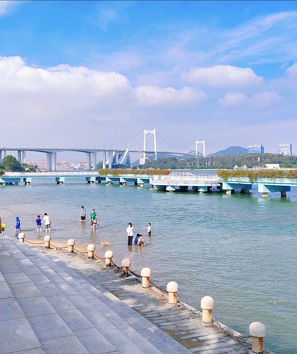 厦门海沧湾公园:海岸线上的城市漫想在厦门海沧区的滨海地带,海沧湾公园像一条蓝色的绸带,沿着九龙江入海口的海岸线铺展。它没有鼓浪屿的文艺,也不及环岛路的喧嚣,却用2.8公里的海岸线、成片的红树林与对岸的鹭江风光,编织出一幅“左手城市,右...在厦门海沧区的滨海地带,海沧湾公园像一条蓝色的绸带,沿着九龙江入海口的海岸线铺展。它没有鼓浪屿的文艺,也不及环岛路的喧嚣,却用2.8公里的海岸线、成片的红树林与对岸的鹭江风光,编织出一幅“左手城市,右手海洋”的动人画卷。一个初冬的午后,我迎着海风走进这座公园,在潮起潮落间,读懂了海沧与厦门岛隔海相望的温柔。