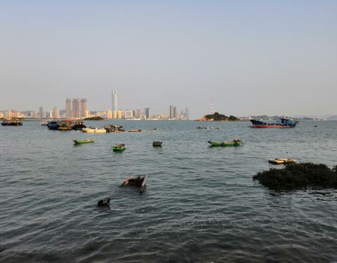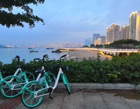 一位在公园工作的保洁阿姨擦着座椅,我问她:“每天看这片海,会不会腻?”她笑着说:“怎么会?每天的潮水不一样,对岸的灯光不一样,连吹来的风都不一样。海沧变化快,从渔村变成新城,但这片海还是老样子,看着心里踏实。”