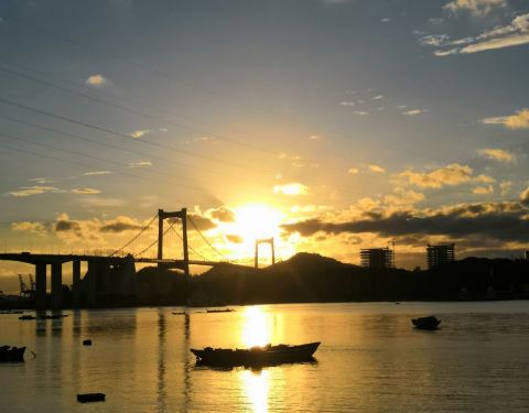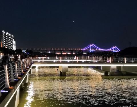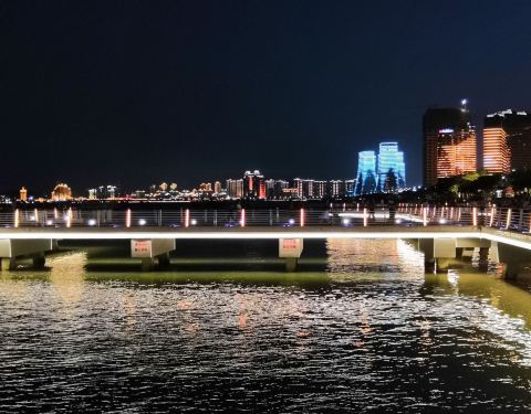 “海沧大桥”是这幅画卷的点睛之笔。这座横跨厦门岛与海沧的斜拉桥,像道钢铁彩虹架在湾口,桥身的钢索在阳光下闪着银光。有摄影爱好者架着三脚架,专门等待夕阳穿过桥洞的瞬间,“每天这个时候,阳光会刚好从桥洞照过来,把海水染成金色。”他们说。夜晚的大桥更迷人,桥身的LED灯变幻着色彩,有时是代表海洋的蓝,有时是象征活力的橙,与对岸的灯火交相辉映。