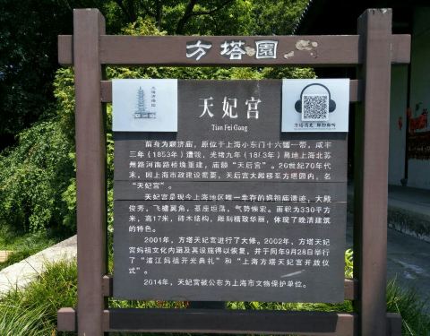 上海现存唯一的妈祖庙啦,原来并不是在松江方塔,据介绍是从市区迁移过来的。据我们推测,原来应该是建在上海城墙上的,天妃宫周边还有很多妈祖的介绍。