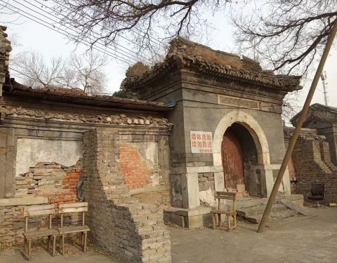 就在万寿寺旁边~应该勉强算个古迹遗存吧~不是个景点~就是一座几乎快垮塌的危房一样的山门,里边似乎早就是杂院了~