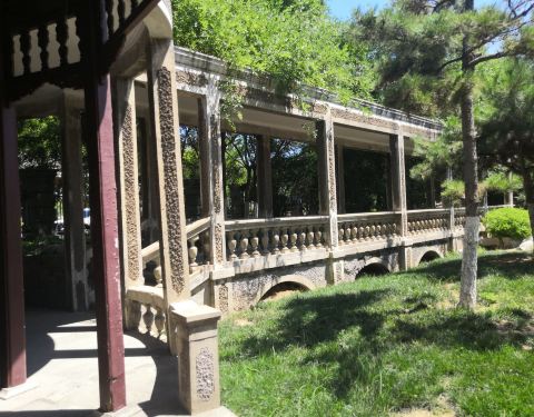 在手机地图上发现的军阀曹琨的“曹家花园旧址”,导航去了后发现现在在某部队医院的院内,虽已年久,但园内有假山,小瀑布,荷塘,长廊,小山,亭子,月亮门等,可见当年建院人的富贵,值得一游。