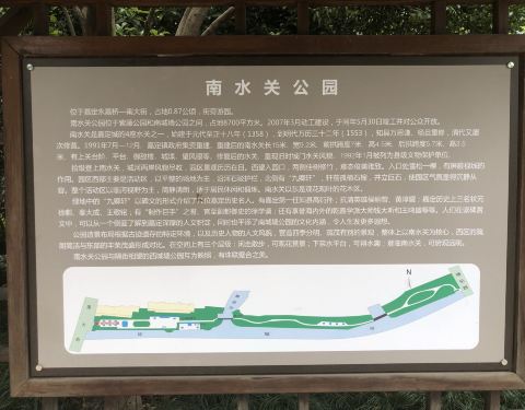 南水关公园位于上海市嘉定区嘉定南大街南侧,紧邻嘉定河,顾名思义就是临水的关隘南水关公园位于上海市嘉定区嘉定南大街南侧,紧邻嘉定河,顾名思义就是临水的关隘。南水关初建于元代,现只保存有地名,关城已不复存在。