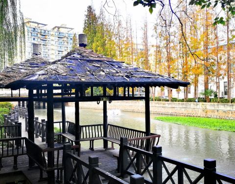 适合健身散步,沿着蒲汇塘的河岸景致不错