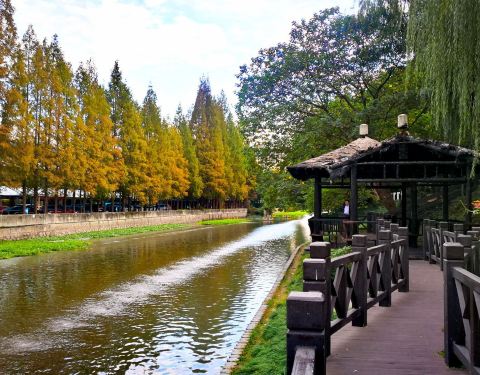 适合散步,开放式公园河岸和蒲汇塘河岸联通。