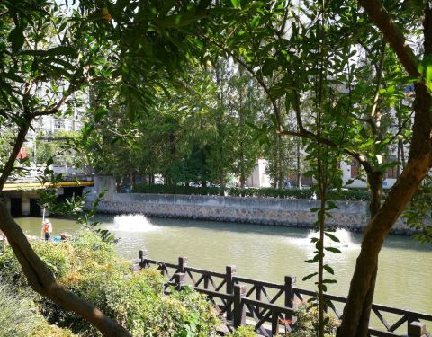 开放式街心公园,绿化不错,还有沿河的小径。