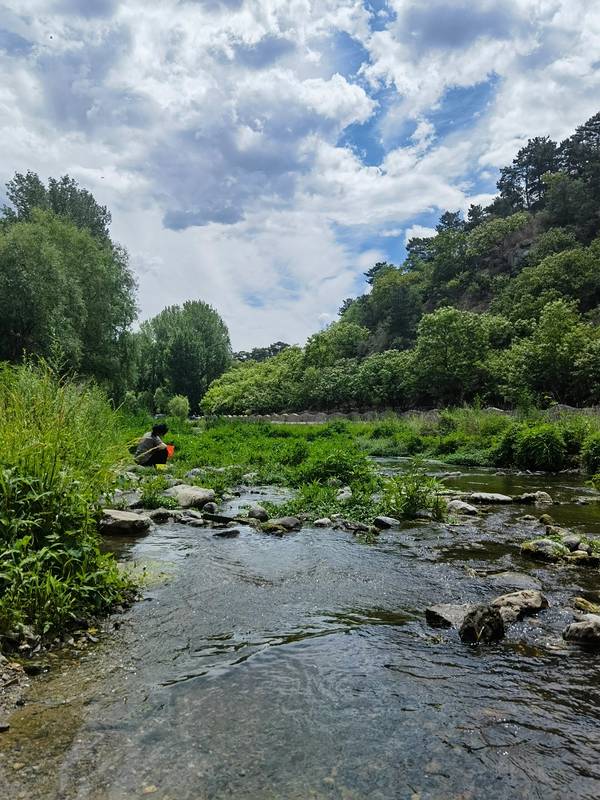 太爱这里了!玩水休闲可玩儿的好多 |||北京的郊区一季一景,山水如画。而爆热的夏天,是一定要去郊区溯溪玩儿水的。周末约了朋友一家去老地方纳凉—怀柔六渡河村。 我们真的真的太爱这里了,玩儿不腻。天蓝山青,河水清澈,孩子们可以下河里玩儿水,大人可以钓鱼;民宿院落静雅整洁,原木风,孩子们可以院子里玩儿土、呲水枪、捉迷藏、过家家,大人可以喝酒聊天烧烤,十分惬意。晚上还有“小脏摊”夜市可以逛。 六渡河村依山傍水,资源丰富,夏季还可采摘樱桃、杏,秋季可以免费上山捡品质十分好的栗子。孩子们还坐了三轮车,特别的体验。 村子对面、小河旁,还有一个文艺范儿十足的文创市集,夕阳半落、晚霞锦绣,坐下来喝杯咖啡、发发呆、撸撸猫,多了一份悠然。 两天时间很快过去,小伙伴们依依不舍。大人何尝不是呢?能放松下来的时刻,越来越少。 推荐六渡河的原因: 1.免费。不同于房山十渡大部分河流都圈起来变成了景点,怀柔渤海镇的怀沙河是全开放的,免费玩儿水、扎帐篷。 2.不扎堆。从四渡河到六渡河,一路很多浅滩,可选择性多,大胆推测,可以一路玩水到九渡河。 3.交通便利且距离适中。从石景山出发,途径西六环—高速—县道,共80多公里的路程,大约走一个半小时就到了。 4..住宿选择多、环境好。六渡河村委算是最早规划民宿路线的村了,村里有很多文艺调调浓郁的特色民宿。朋友开的“自在家山”系列民宿是最早入驻的品牌,有多套院子,风格各异,但都有大的院子,住得舒服, 性价比很高。 5.停车方便。村里有停车场,提前联系民宿老板可以帮忙找车位。 6.吃饭方便。民宿可以提供烧烤工具或做饭。村里有家农家饭店可吃虹鳟鱼。文创市集炸鸡、泡面,非常好吃。通过民宿老板可点菜让村里阿姨做,做好送到民宿。距离六渡河不到10公里的地方有著名的网红饭店“群生大院”,饭点前两小时去,否则排队。