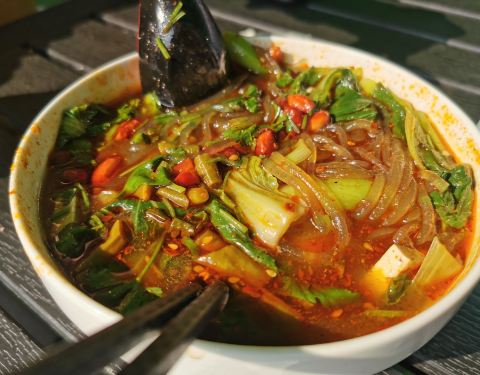 可惜是冬天,夏天一定很热闹,因为看招牌有好几处活动场所,水果集市,小吃集市。吃饭要露天,虽然有顶棚,但还是有点风,找了个有太阳的地方,舒服很多。吃的东西按地域分区,所以商家不会担心。草坪很大,正好...
