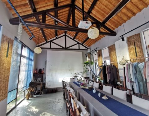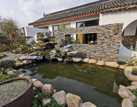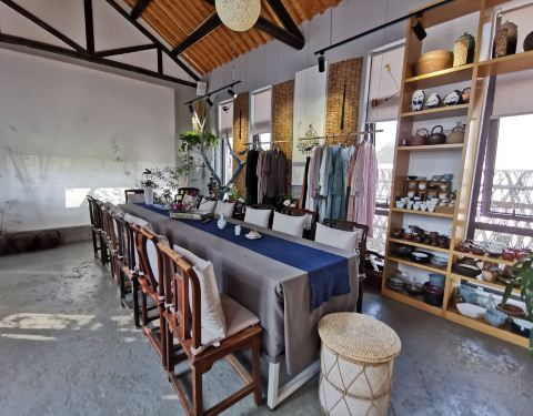 仿佛一个世外桃源,在一个极为安静的角落,没有什么游客,只有小池塘里的欢快游动的锦鲤和旁边客人寄放的小狗让这个茶室变得活泼。室内的摆设是主人自己淘来布置的,也有出售的茶具茶叶服饰等等。还有室外的茶座...