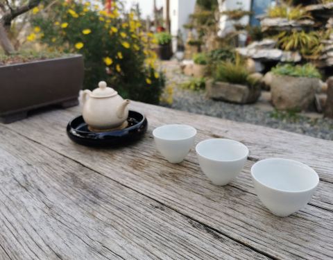 仿佛一个世外桃源,在一个极为安静的角落,没有什么游客,只有小池塘里的欢快游动的锦鲤和旁边客人寄放的小狗让这个茶室变得活泼。室内的摆设是主人自己淘来布置的,也有出售的茶具茶叶服饰等等。还有室外的茶座,很适合与朋友家人来小憩品茶的地方。