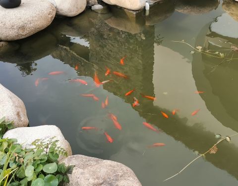 在一个极为安静的角落,没有什么游客,只有小池塘里的欢快游动的锦鲤和旁边客人寄放的小狗让这个茶室...