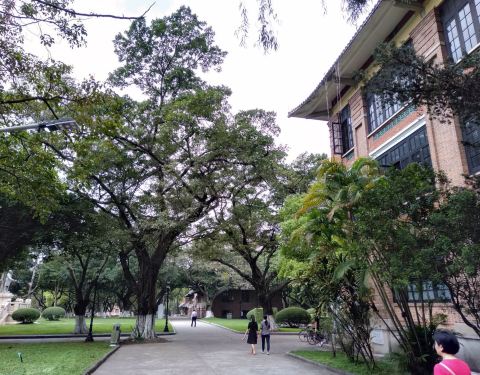 中山大学南校区内的民国时期建筑风格群,这片区建筑古老之后,树木也十分高大古老