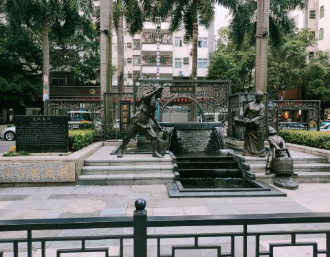 ...水围文化广场这里,还做的蛮好看的,感觉一下有了历史感和文化感,旁边还有一颗百年古榕,是个好地方