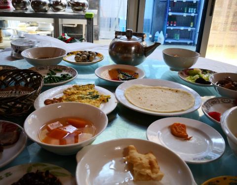 北京十三陵康陵景点环境优美,空气清新,陵区群山环抱,山清水秀风景殊胜。这里的长陵镇康陵村农家饭特色就是—春饼宴,这里的春饼非常的正宗。