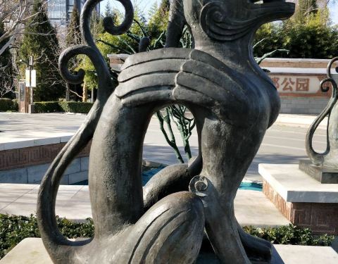 在北京南城白纸坊,位于河的西岸,三个仿制的坐龙栩栩如生,非常逼真,坐视观瞻,物换星移,世间沧桑。